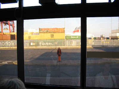 Singing amidst the containers.